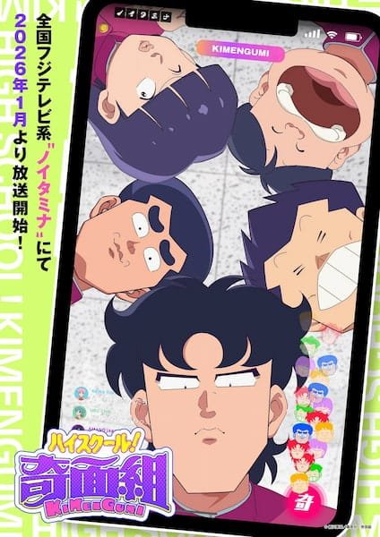 Publicado na Weekly Shōnen Jump entre 1982 e 1987, High School Kimengumi acompanha estudantes que transformam o cotidiano em uma sucessão de situações absurdas. Os nomes dos personagens são jogos de palavras: Yui Kawa remete a “kawaii” e Chie Uru brinca com “urusai”, gíria para algo irritante. Com tantos trocadilhos, a nova versão pretende manter viva a essência cômica que marcou a obra original.
