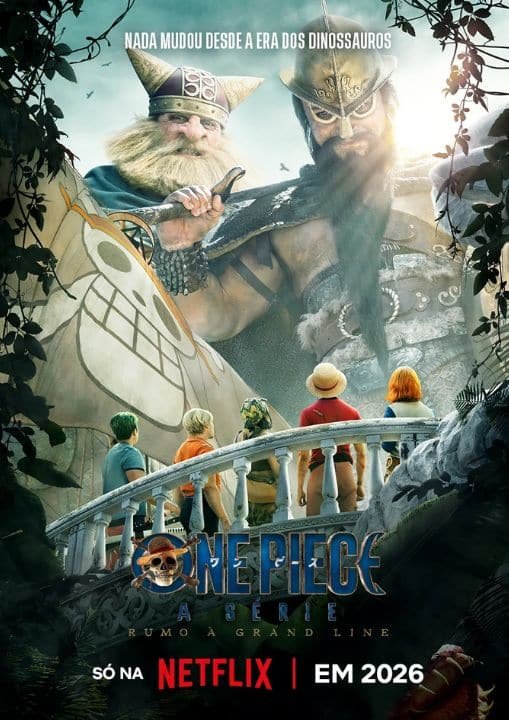 A produção também divulgou um pôster em que os dois observam a tripulação. Segundo a plataforma, o episódio ambientado em Little Garden chegará no meio da temporada, elevando a tensão e mostrando toda a mitologia dos Elbaf de forma inédita no live-action de One Piece.
