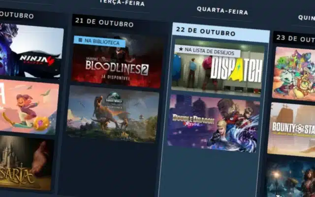 O Calendário Pessoal do Steam usa o histórico de jogatina e a lista de desejos para montar uma programação personalizada. Ele indica quais títulos já estão na sua biblioteca, destaca games marcados como favoritos e ainda exibe preços atualizados, incluindo possíveis descontos em andamento.